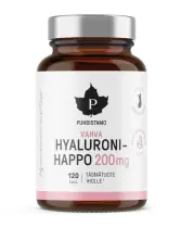 Puhdistamo Vahva Hyaluronihappo, 120 kaps. on korkealaatuinen ja vahva täsmätuote ihon hyvinvointia varten. Vahva Hyaluronihappo sisältää 200 mg hyaluronihappoa, joka tukee ihon kosteustasapainoa. Hyaluronihappo on tunnettu sen kyvystä sitoa kosteutta ja parantaa ihon joustavuutta. Tuote sisältää myös C-vitamiinia, joka edistää kollageenin muodostumista. Kollageeni on tärkeä rakennusaine iholle ja tukee sen normaalia toimintaa. Lisäksi C-vitamiini auttaa suojaamaan soluja hapettumisstressiltä. Tämän lisäksi kapseleihin on lisätty myös peltokorteuutetta, joka on luontainen piin lähde.